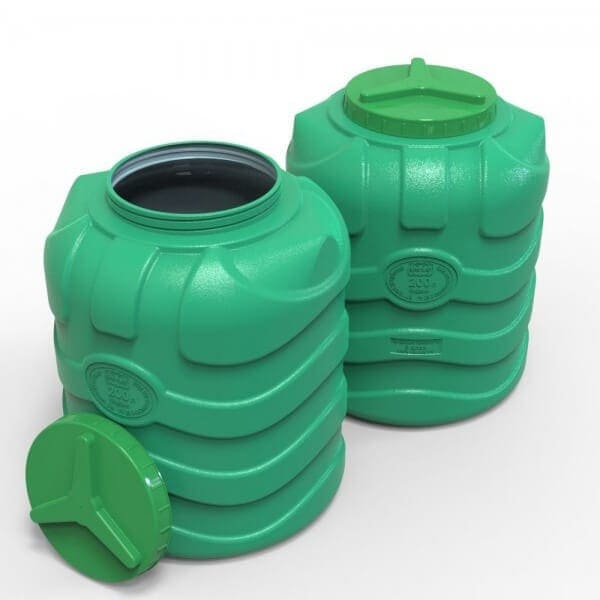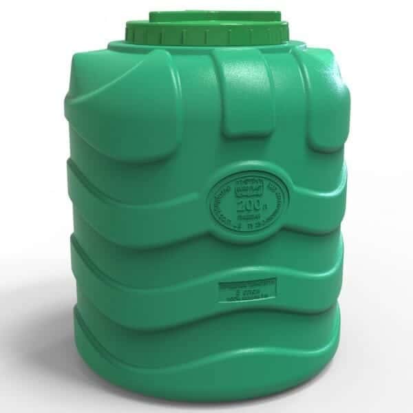 Talpa plastikinė vertikali trijų sluoksnių 200 litrų. Aukštis – 79 cm, skersmuo – 63 cm.